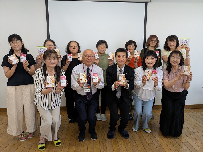 学習会では、『寒天』と『酵豆粉+』について学びました。『寒天』については、健康維持に必要な食物繊維を手軽に摂取できたること、『酵豆粉+』については、うまみやコクをプラスすることで減塩メニューを簡単に作れることを学びました。