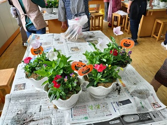 ・みんな楽しく鉢植えをしていて、良い秋の一日になりました。