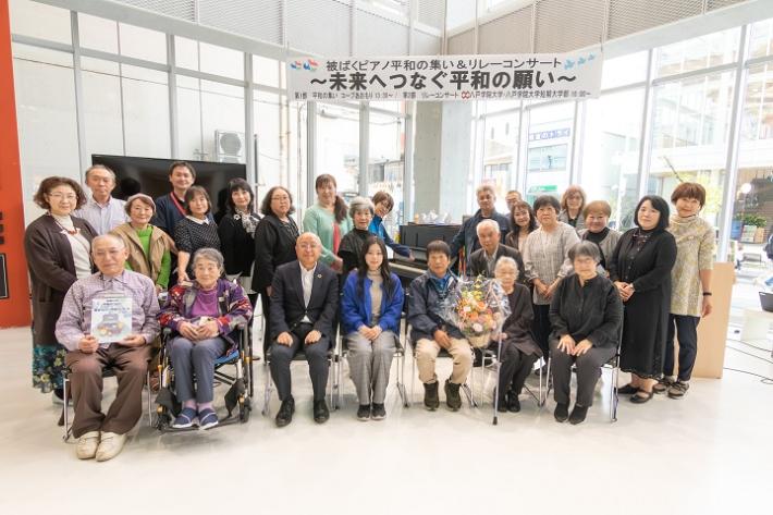 第2部、八戸学院大学・八戸学院大学短期大学部主催:平和ピアノリレーコンサートを総勢30組で開催しました。恒久平和を願いながら、被爆ピアノの演奏に耳を傾けました。
