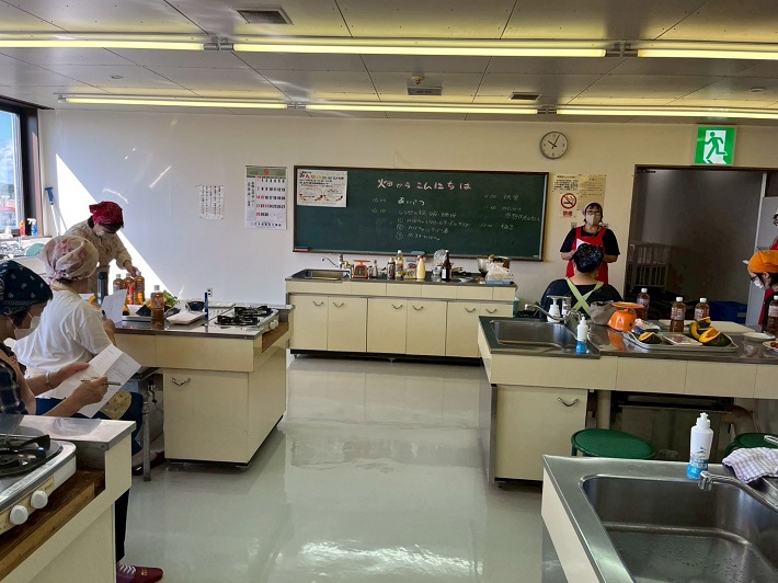どのグループも「かぼちゃの肉巻き」「かぼちゃのサラダ」「かぼちゃのそぼろ煮」の3種類を手際よく調理することができました。