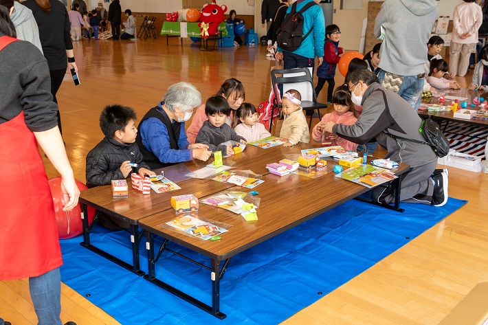 11月2日(日) 五所川原市地域福祉センターで五所川原市社会福祉協議会 、コープあおもり五所川原地域リーダー会主催、五所川原市食生活改善推進委員会、NPO法人ほほえみの会協賛「秋まつり みんなのあそびば」を開催しました。地域のアクティブシニアや高校生のボランティアも加わり、総勢42人のスタッフが協力して秋まつりを盛り上げました。