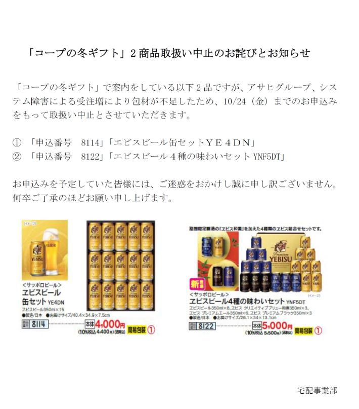「コープの冬ギフト」2商品取扱い中止のお詫びとお知らせ