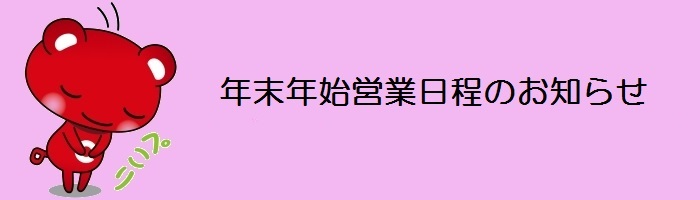 | 1月1日(木) | 休業日 | 休業日 | 休業日 | 休業日 | 休業日 | 休業日 |