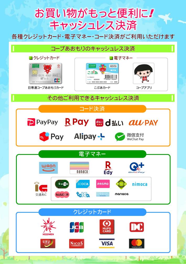 【店舗】各種キャッシュレス決済がご利用いただけます