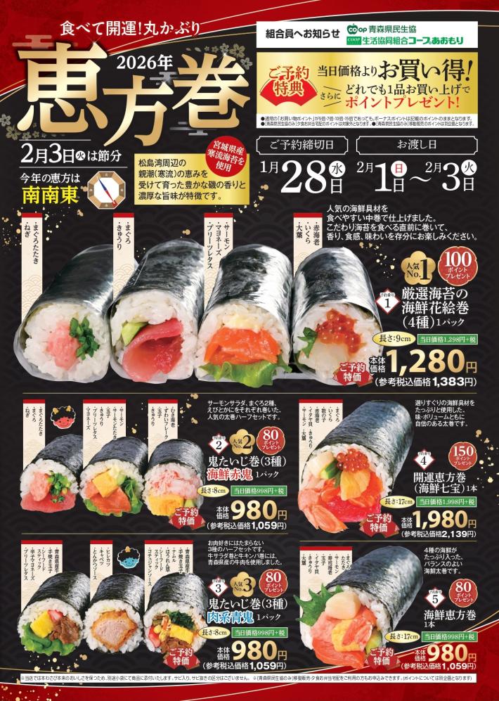 【店舗】コープの恵方巻 ご予約承り中